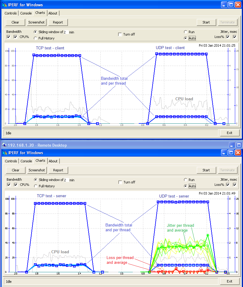 Real-time charting of TCP and UDP tests.